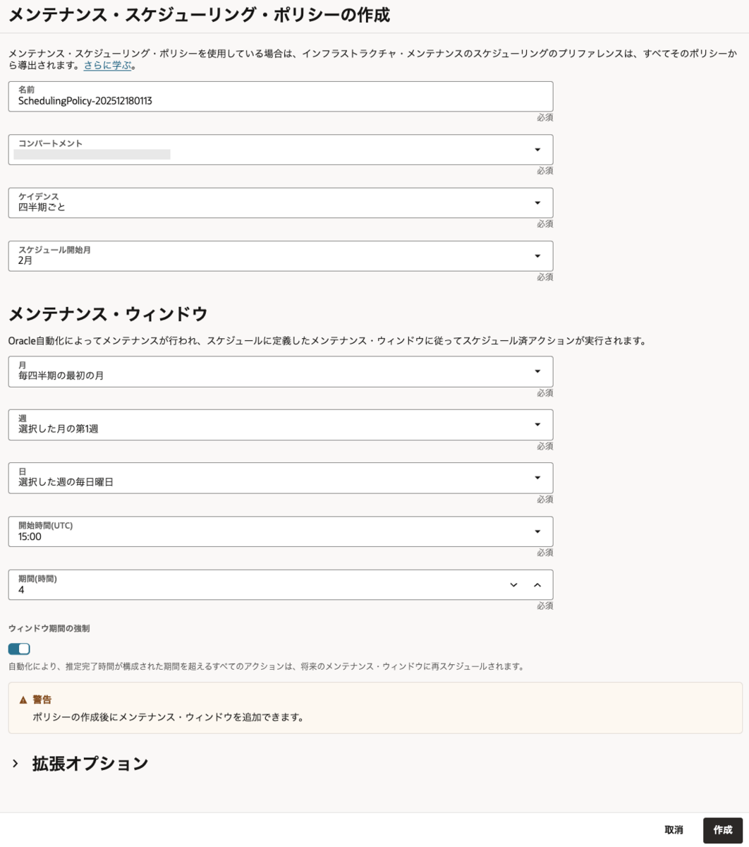dbaascliを利用すると、コンソール/APIで実施するよりも細かい指定が可能です。