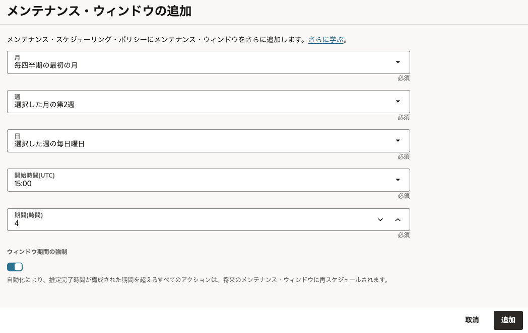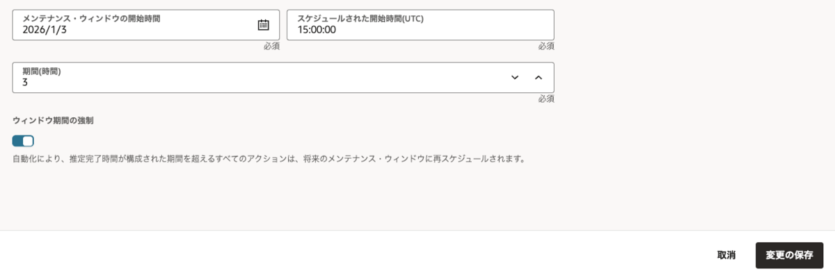注意点としては、コンソール/APIから実施する場合には、実行ができないまたは影響がでる可能性がある処理を行おうとすると、画面での選択がグレーアウト or 実行時に別の処理が実行中というエラーで、別の処理との同時実行によるトラブルを防止する仕組み(ロック)になっていますが、dbaascliで更新作業中はコンソール/APIにはそのロックがかからないので、同時実行してしまうとどちらかの処理が失敗もしくは影響を及ぼする可能性があります。そのため、コマンドツールでの実行時は、別の作業者が作業しないように調整していただいた方が良いかと思います。